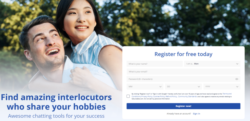 - You will need to enter your name, email address, and your date of birth—after that, you just click “Register Now” and it’s done. Right after that, you’ll be able to use the website: what’s more, on SakuraDate, you’ll get 20 credits for free which means you can even start sending messages without any payments!