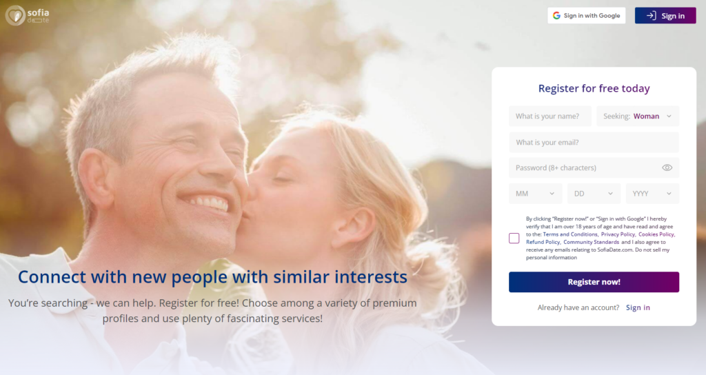 Typically, registration on mail order bride websites is free, and the registration process is usually quite fast and simple. Well, at least that’s what we can say about the best websites like SofiaDate—here’s a screenshot of the registration form, and as you can see, you will only need 1 minute to sign up here.