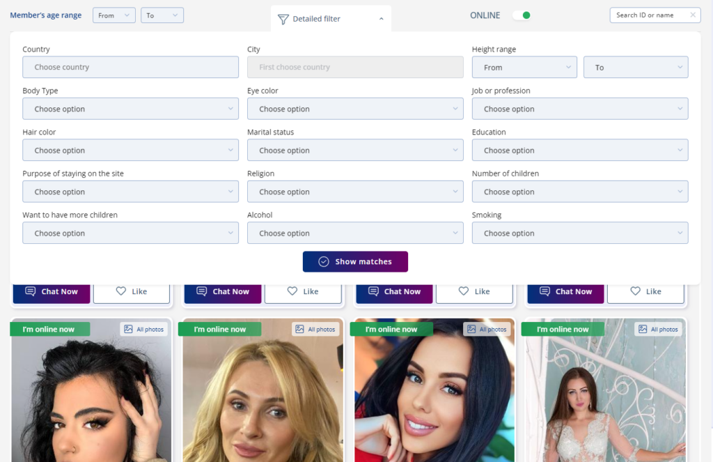 That’s how a search box works on mail order bride sites (we took SofiaDate as an example because it’s one of the best websites in this industry right now). There are 15 search filters, all of which are free, and you can use them to get the most effective search results. Not all the sites offer so many filters, but SofiaDate is superior in any aspect.